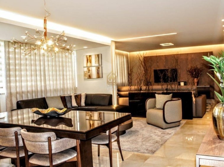 Apartamento com área total de 160m², ótimo acabamento de luxo, 1 sala, reformado, iluminação planejada, armários nos quartos, 1 suíte, banho de empregada, quarto de empregada, área de serviço independente, despensa, 2 vagas de garagem.