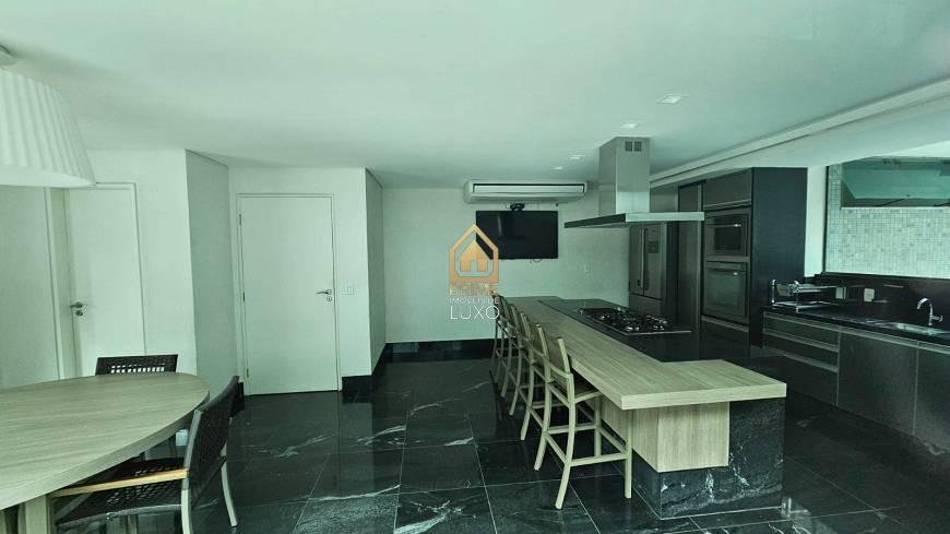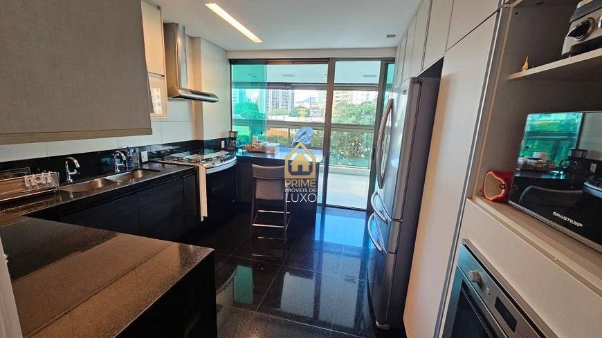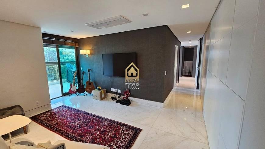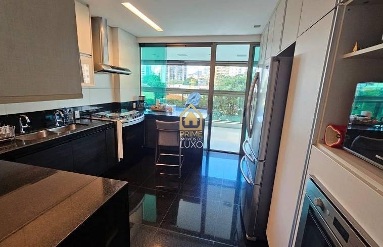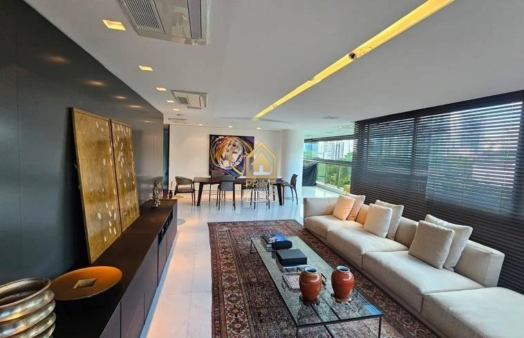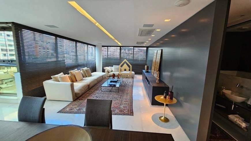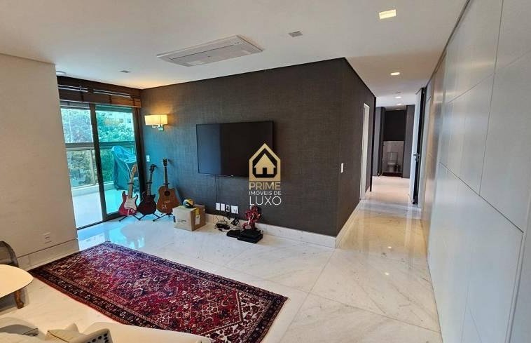 Este imóvel conta com 247m² de área útil, constituído por uma sala grande, para 3 ambientes, um estar-íntimo e 4 amplas suítes. A suíte máster tem um closet grande e um banheiro com 2 chuveiros, 2 cubas e banheira de hidromassagem.