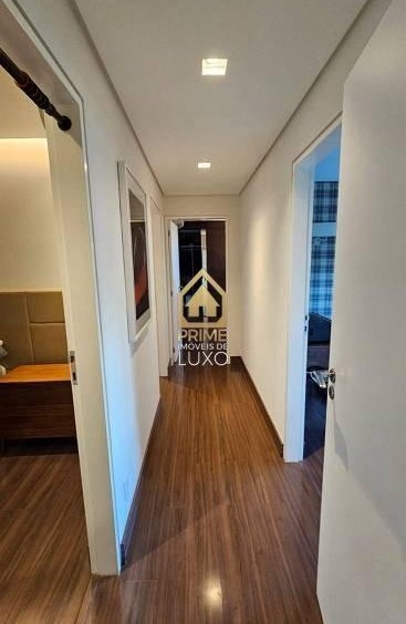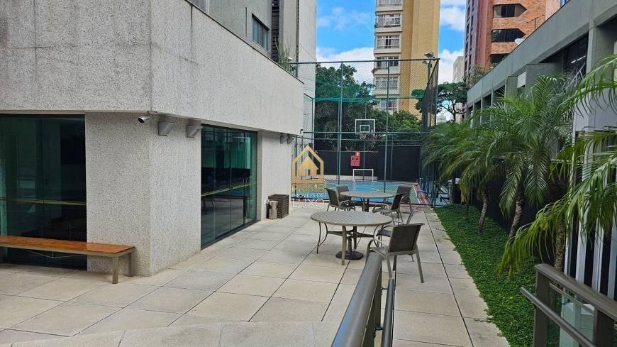 A varanda é integrada à cozinha e à sala de jantar. Já a área de serviço é ampla e conta com lavanderia, banho e quarto de empregada. O condomínio possui 2 elevadores, o social e o de serviço separados. O hall é privativo já que neste edifício é um apartamento por andar.