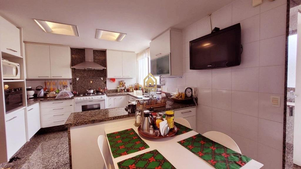 Com uma ampla área útil de 226m², esse imóvel possui 4 dormitórios, sendo 2 suítes, e 2 semisuites além de 5 banheiros sociais e um lavabo. O apartamento conta também com uma área de serviço, cozinha, 2 salas de estar e 1 sala de jantar. Além disso, possui uma varanda charmosa que proporciona uma vista incrível da cidade.