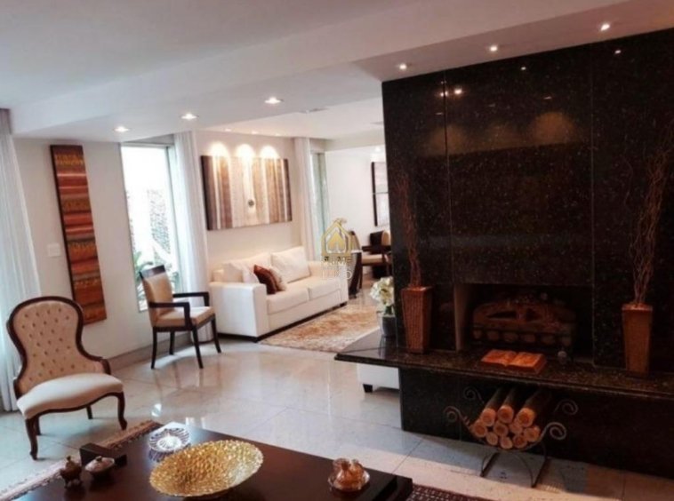1º Pavimento: Sala ampla, dividida em 3 ambientes com piso em granito 1,20 x 1,20, rebaixamento em gesso com projeto de iluminação nos ambientes, sendo um grande sala de jantar com saída para a varanda, sala de estar, linda lareira com detalhes em granito. Lavabo, copa e cozinha repleta de armários, despensa ampla, área de