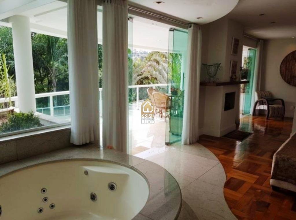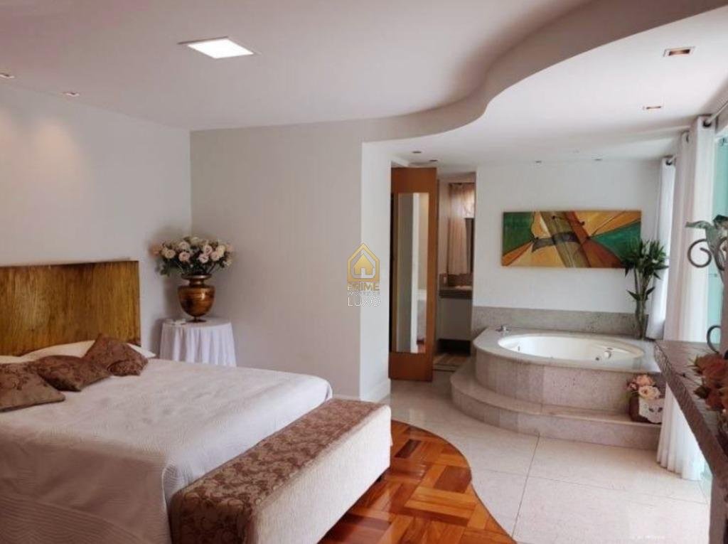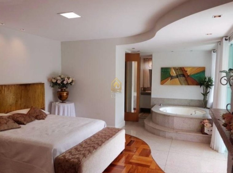 2º Pavimento: Acesso para o nível superior com uma escada em granito e esquadrias em alumínio e corpo de vidro, todo o andar com piso em Taco em madeira peroba do campo, sala de Tv, corredor com rouparia, são 4 amplas suítes todas com closet, a suíte principal conta com um escritório na entrada, passando para o quarto do casal com amplo espaço, closet, banheira de hidromassagem e varandão.
