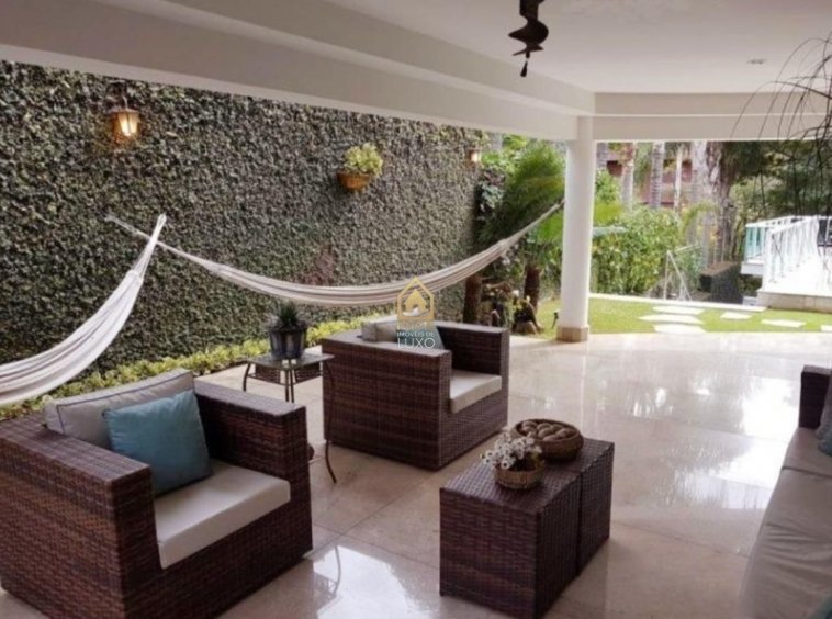 A área externa da casa feita com muito bom gosto, lindo paisagismo, conta com uma boa infraestrutura de lazer composta de quadra de peteca, sala de ginastica, sauna, espaço gourmet, piscina (aquecida) com raia e salão de jogos.