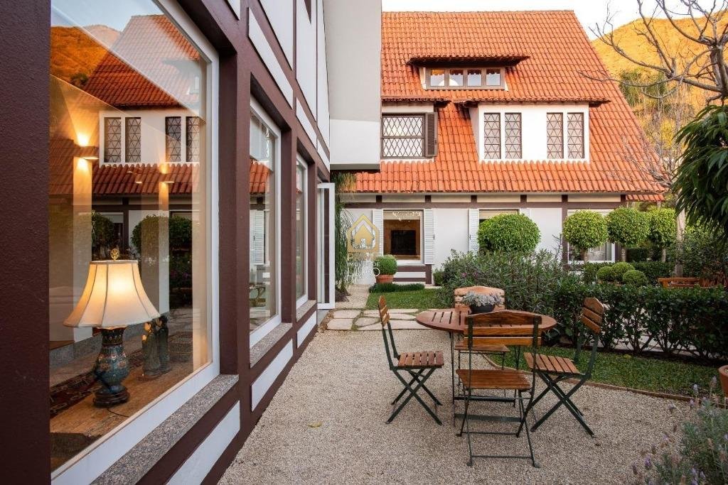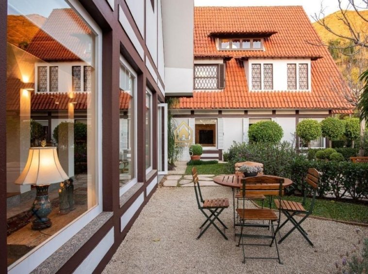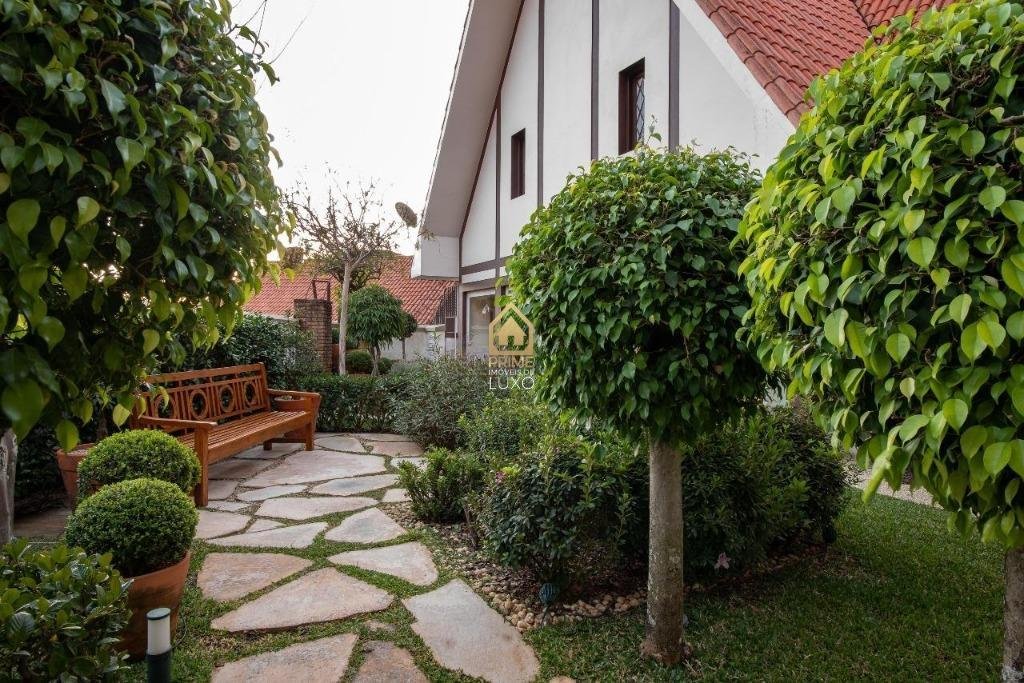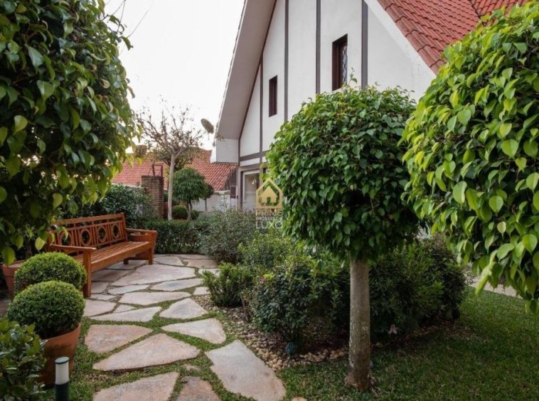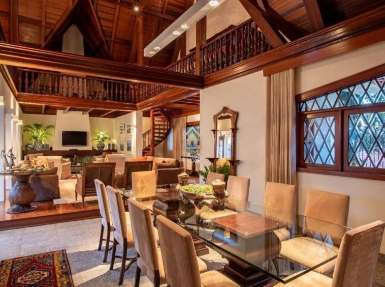 A casa possui arquitetura alemã, salões em