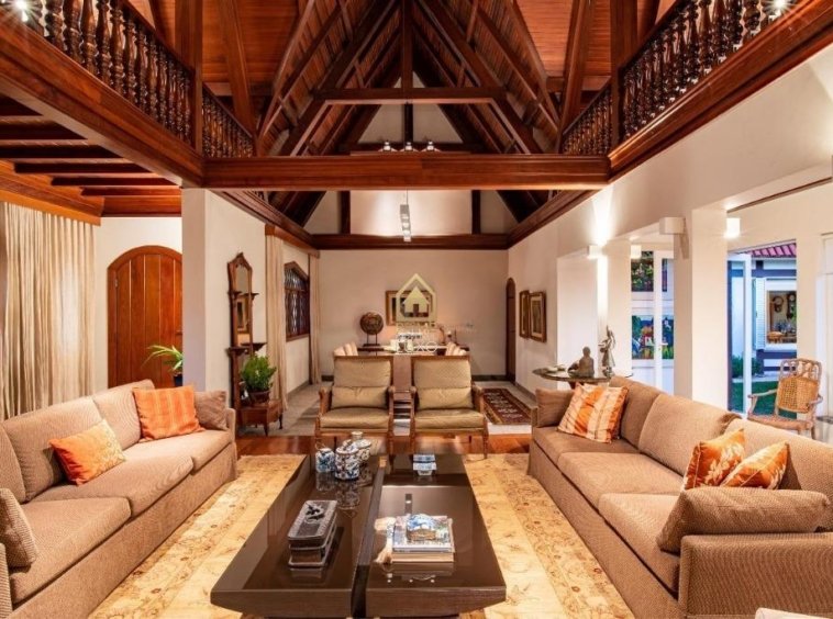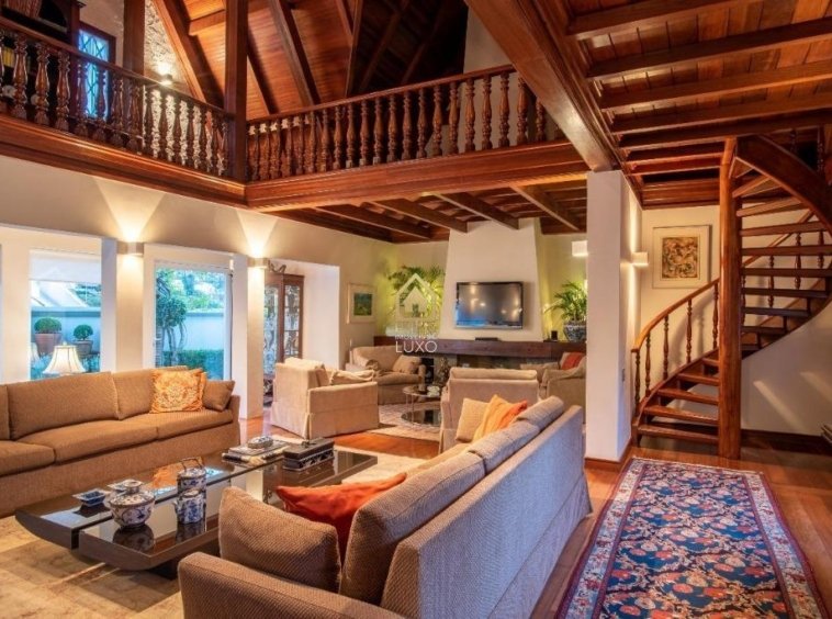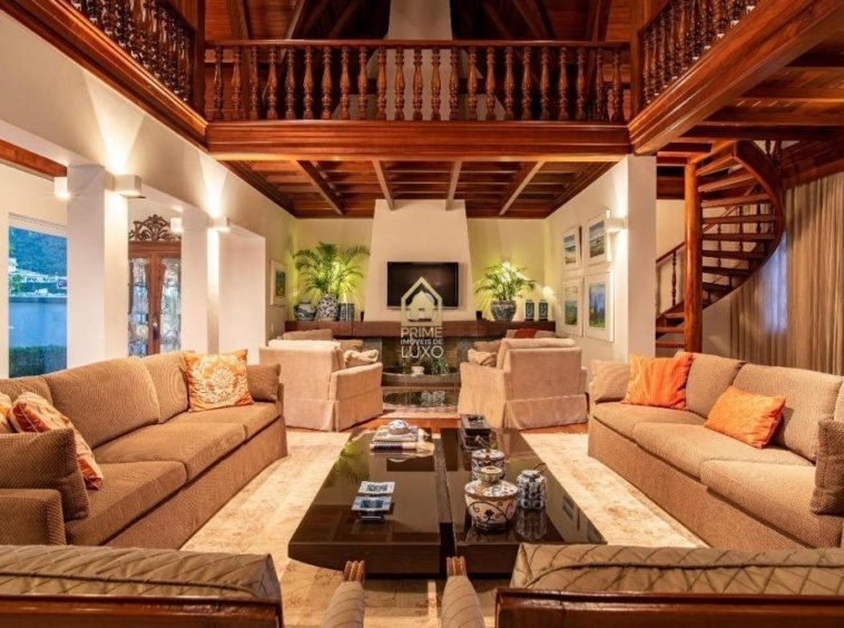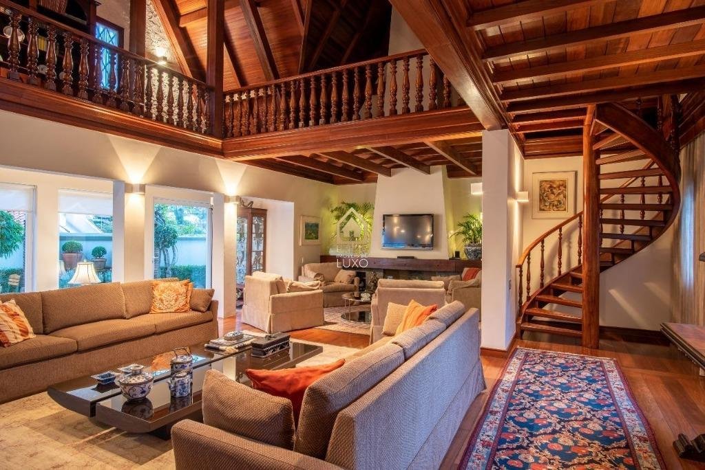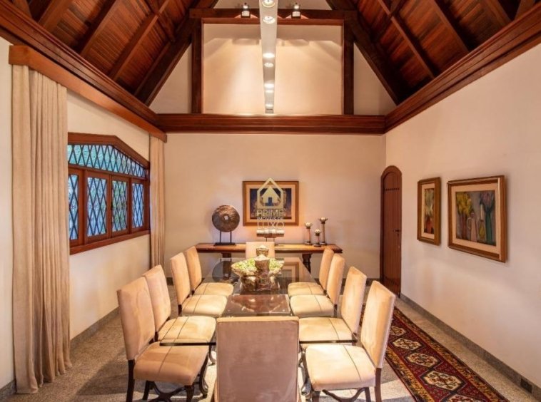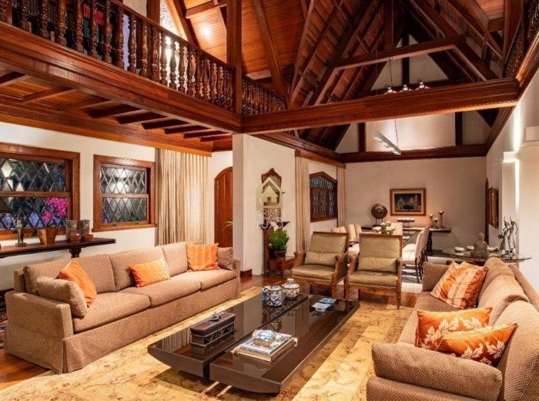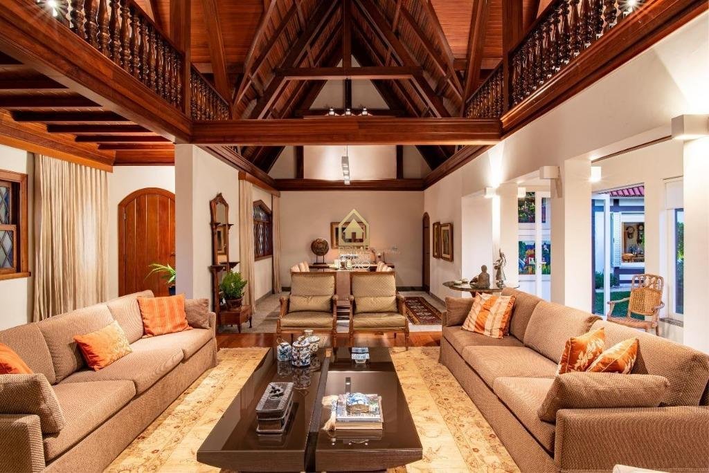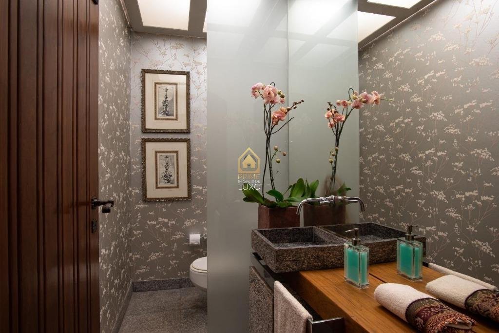 pé-direito duplo, banhos, closet, lavabo, rouparia e quartos com armários