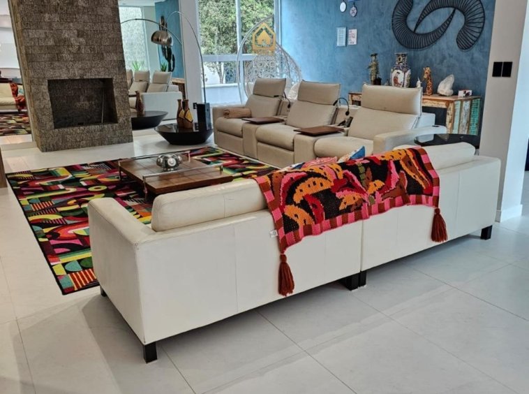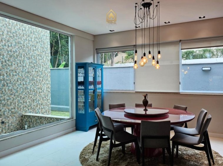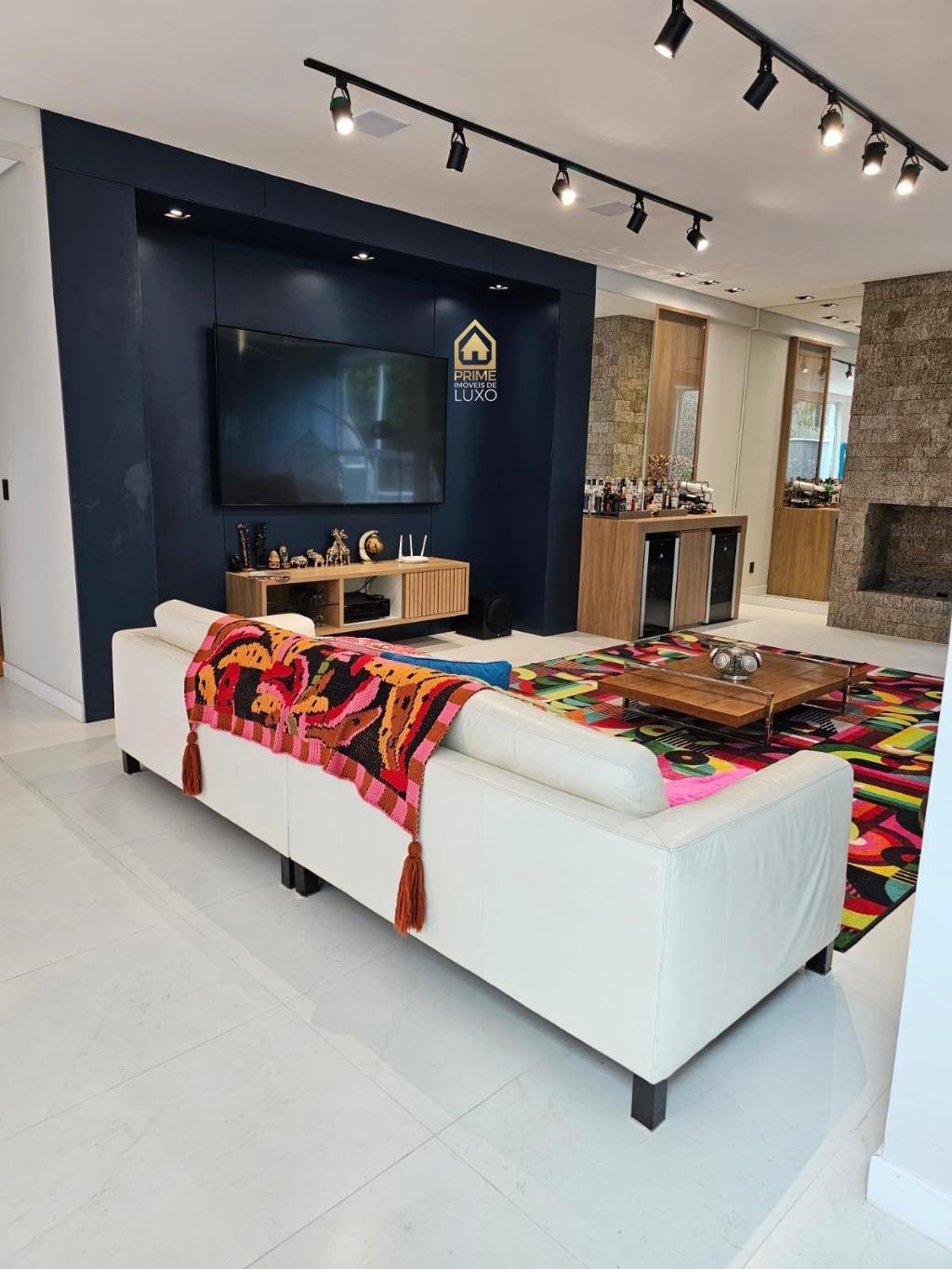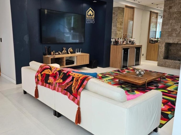 • Ampla sala tv com lareira e home theather, integrada com sala jantar